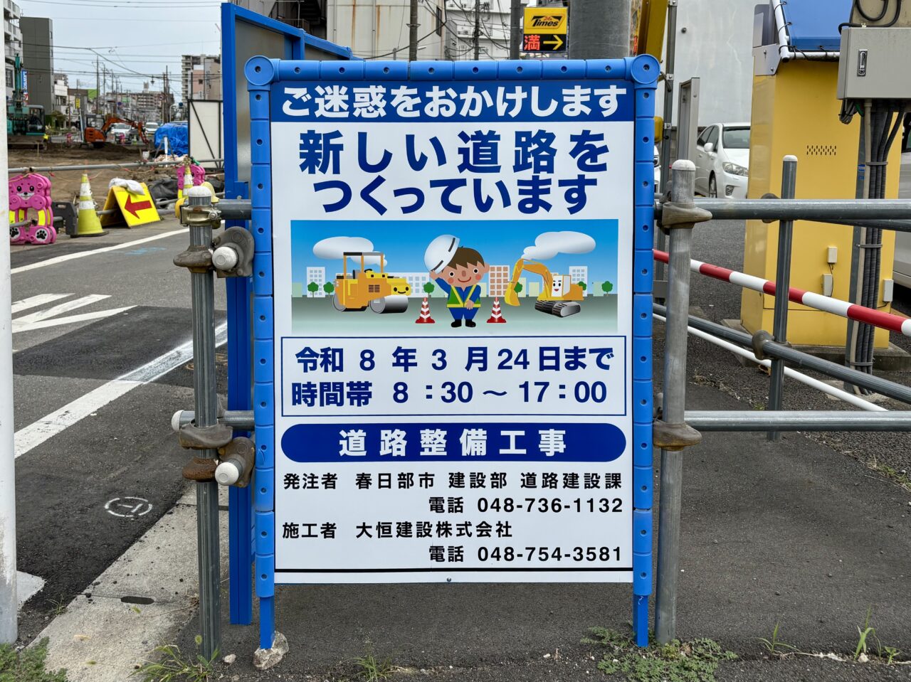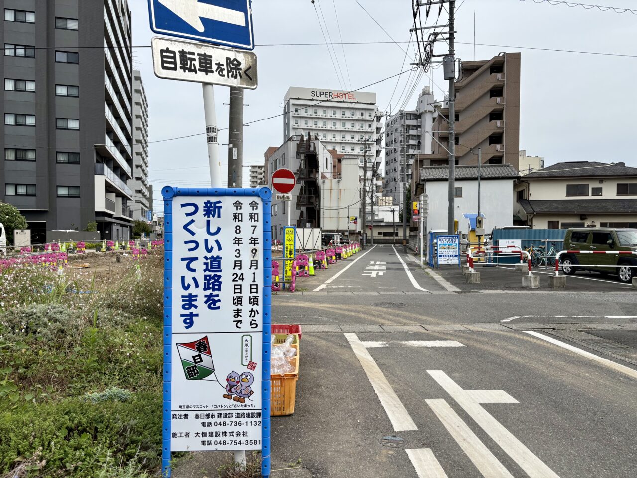 2025年10月現在、春日部駅付近連続立体交差事業とともに、周辺の道路整備が着々と進められています。