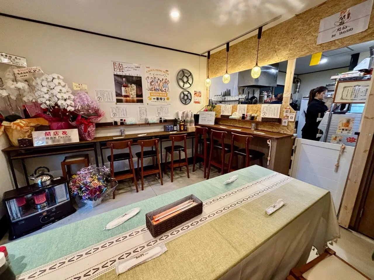 以前と同じ、やわらかい色味のペンダントライトも健在で、より一層“食事処らしい落ち着いた空間”になっていました。