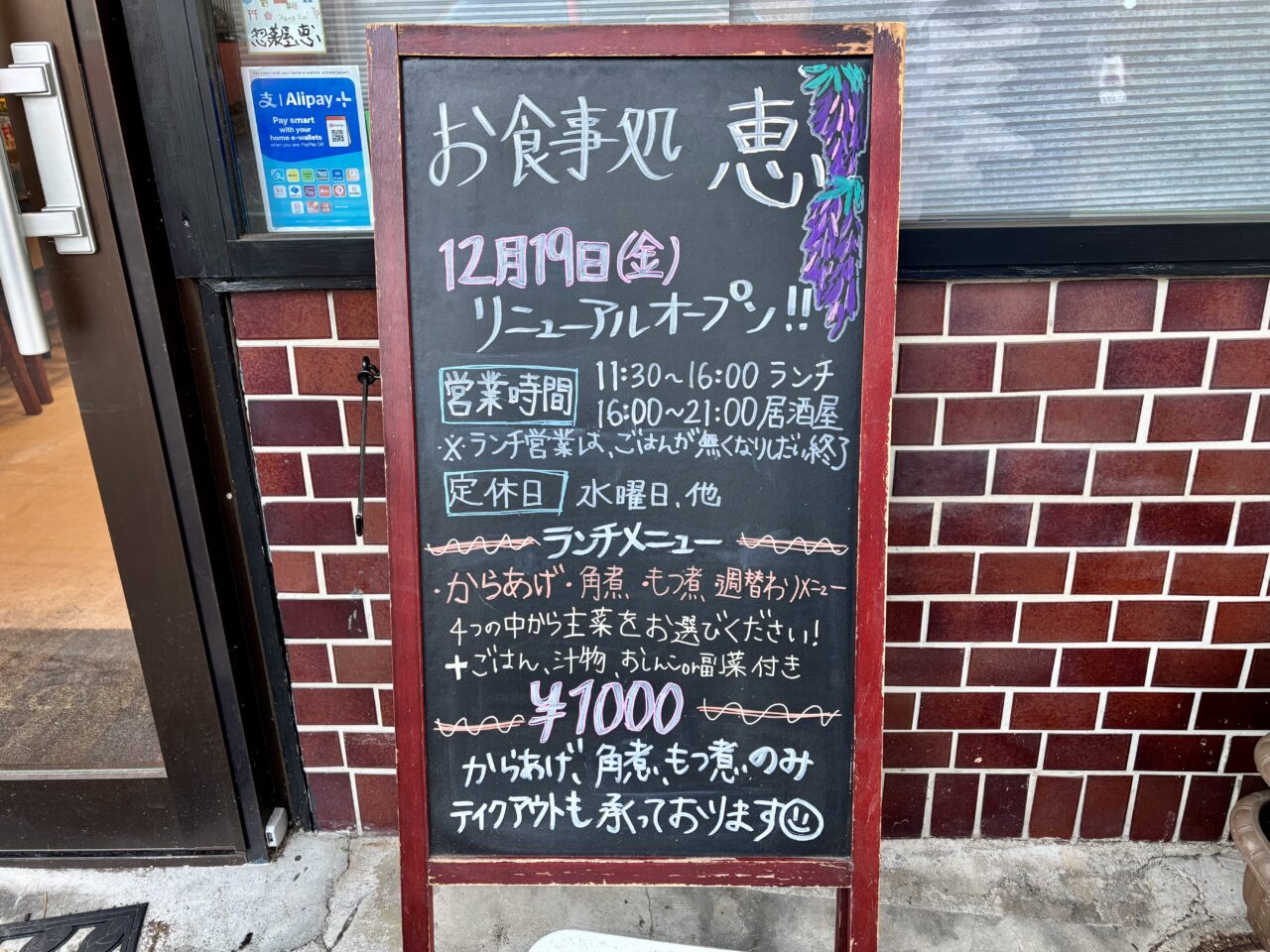 10月7日から休業していた「惣菜屋 恵-megumi-」が、2025年12月19日(金)にリニューアルオープンしました。