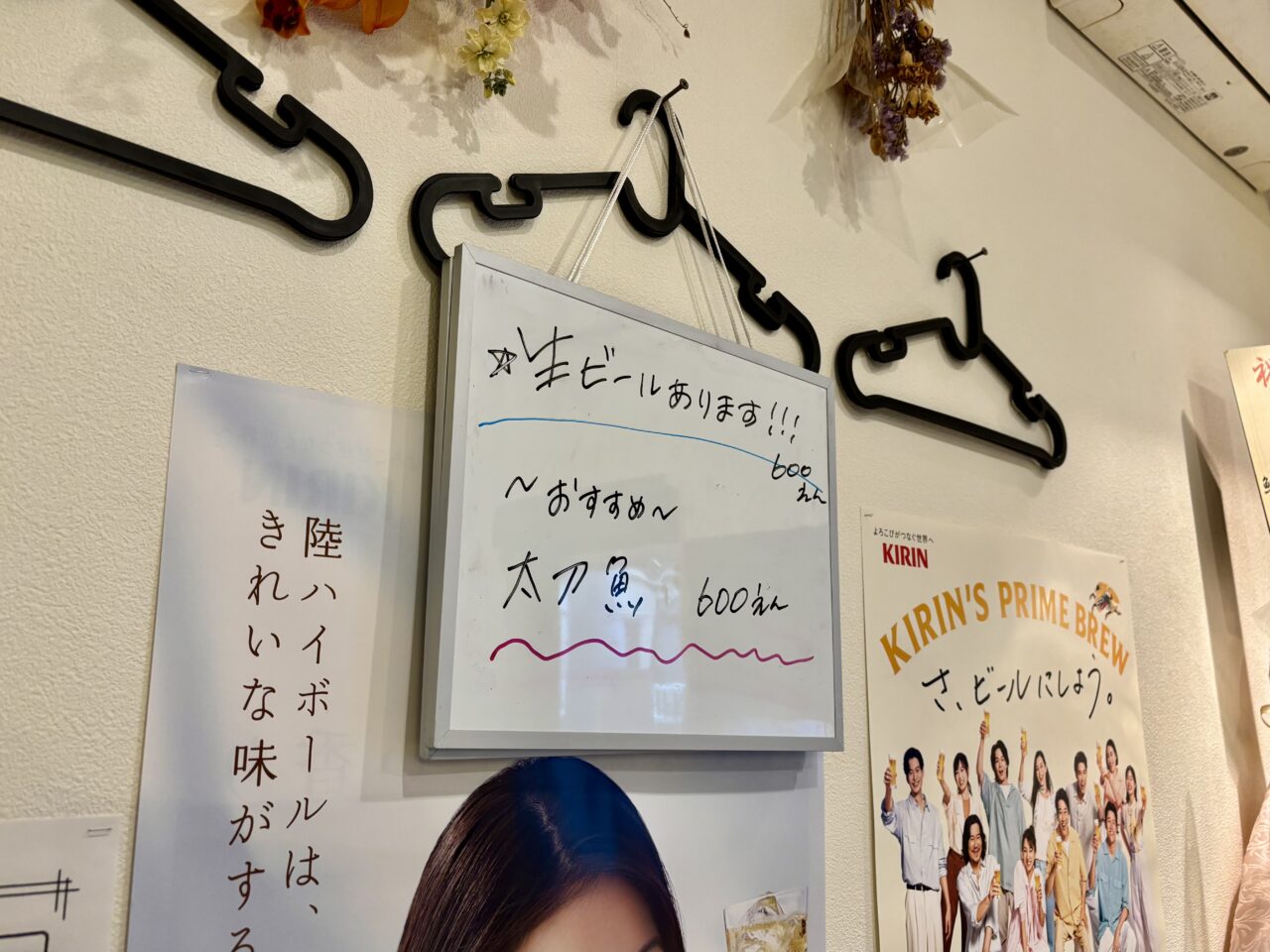 伺った日のおすすめは「太刀魚」。季節の食材を取り入れているのも魅力で、訪れるたびに違ったメニューに出会えそうです。