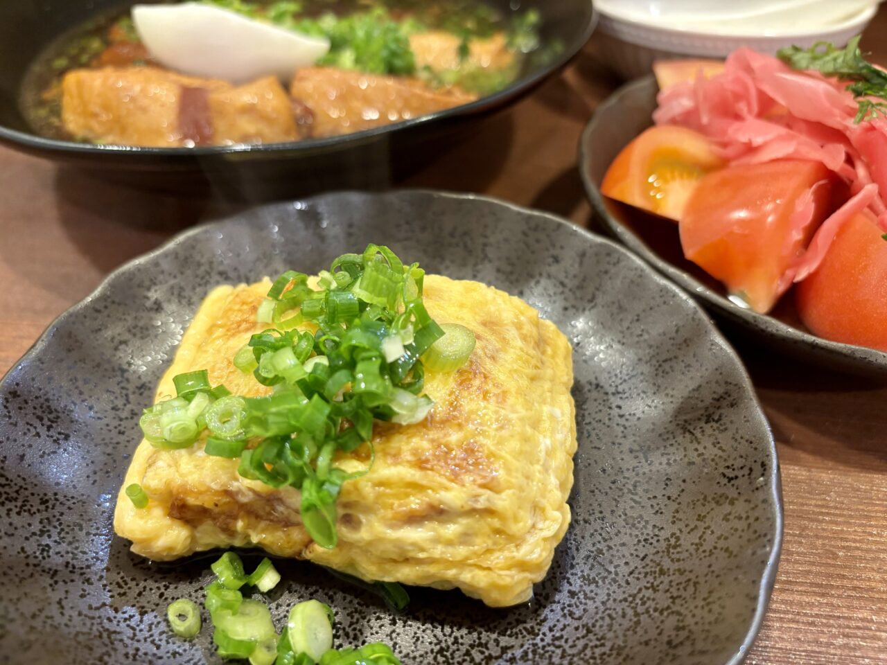 出来立てのだし巻き玉子は、ふんわりとした食感。出汁の旨みがしっかり感じられ、そこにやさしい甘みが重なります。