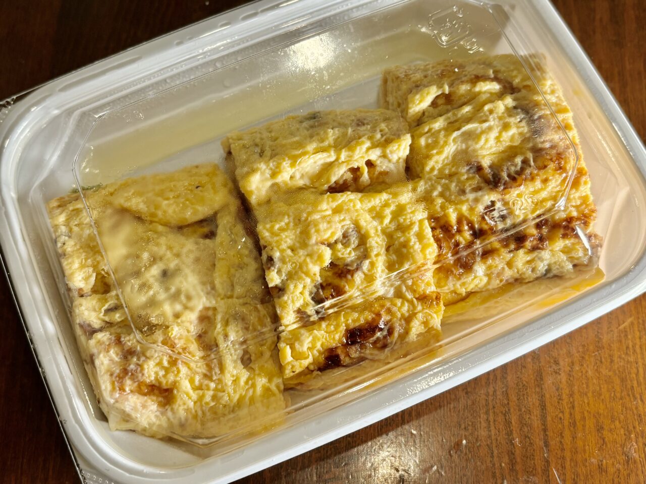 今回は特別に、テイクアウト用の「だし巻き玉子(甘)」(500円)を少しだけ店内でいただきました。