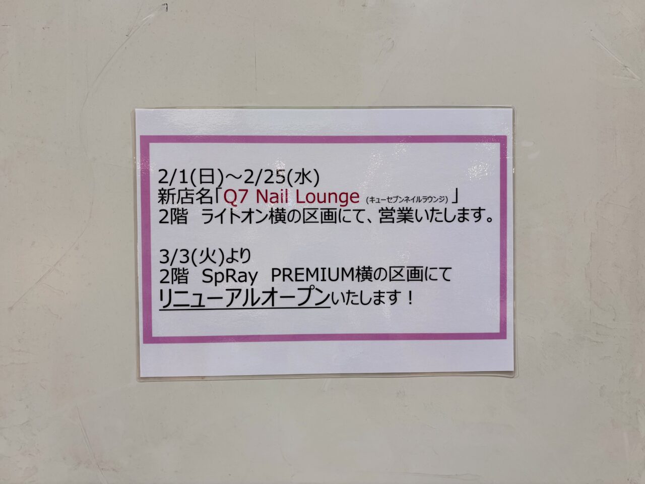 【春日部市】専門店1階ネイルサロンが閉店。イオンモール春日部「QB Nail」が2階でリニューアルオープンへ