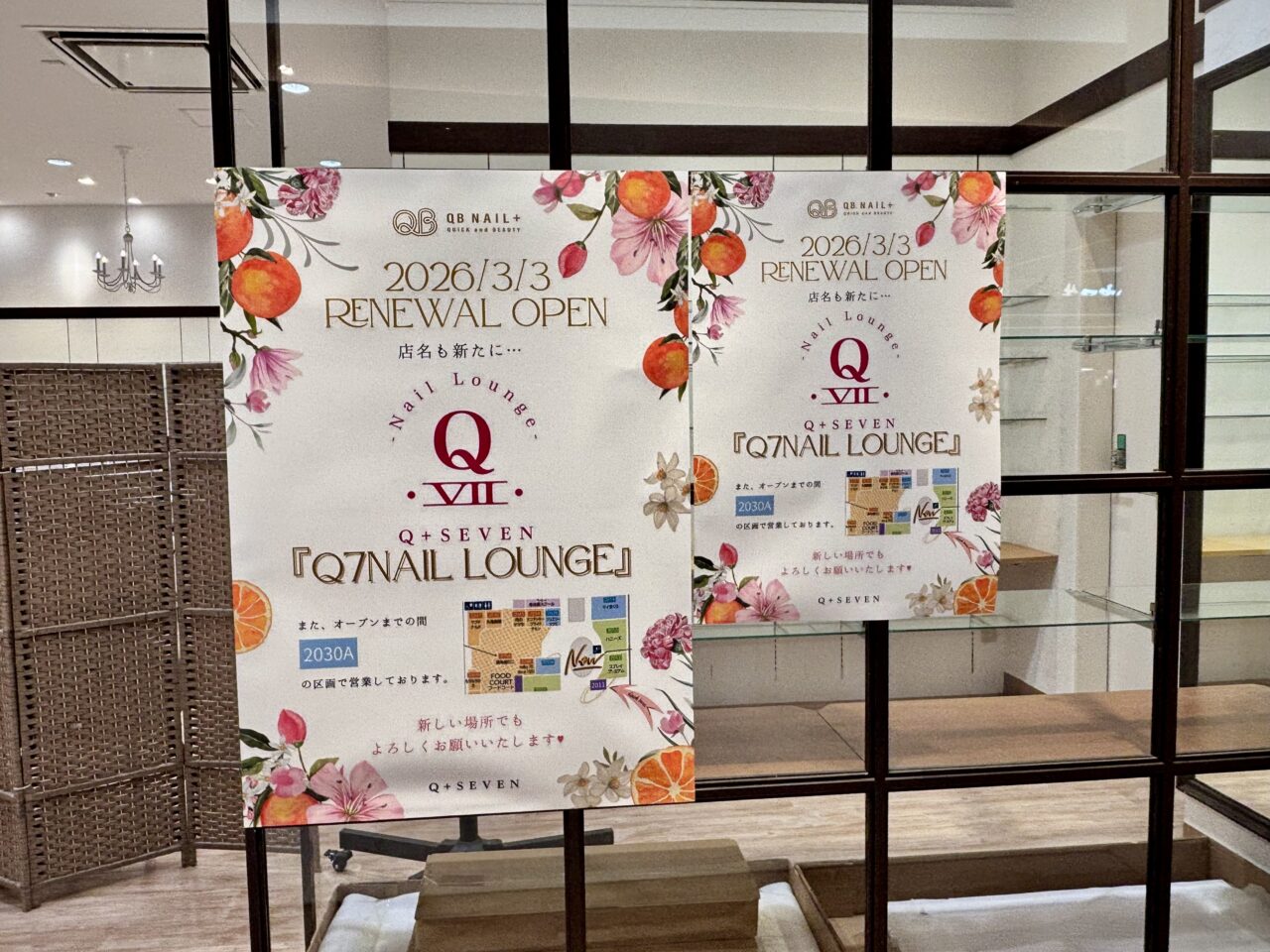 店名を新たに「Q7 Nail Lounge(キューセブンネイルラウンジ)」へ変更し、装いも新たにスタートしています。