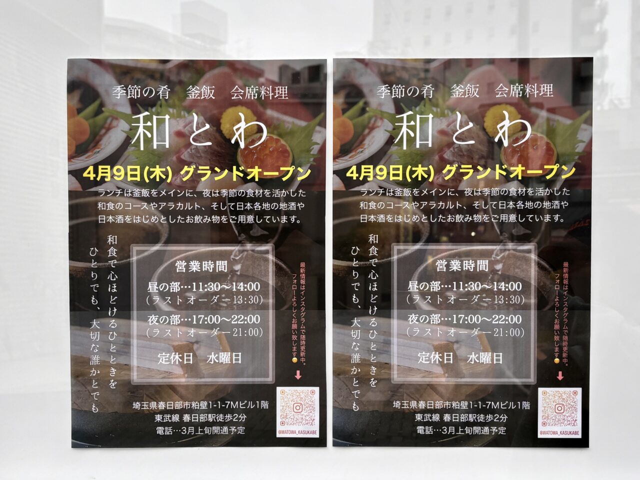 2026年4月9日(木)、ブロンズ通り沿い・Mビル1階に「和とわ」がグランドオープン。春日部駅東口から徒歩約2分と、立ち寄りやすい場所に誕生します。