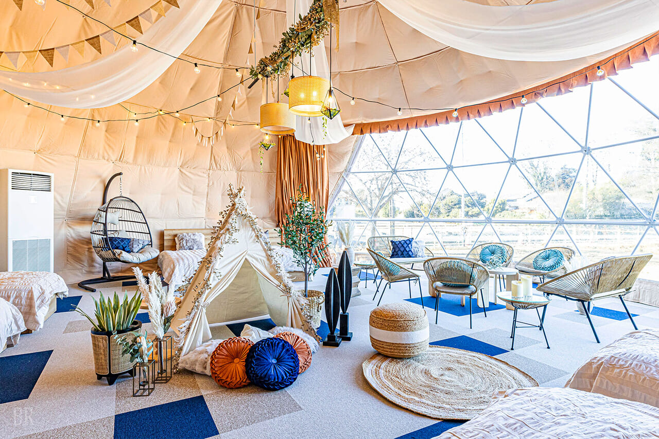 動物園の隣でグランピング!ドーム型テントに宿泊