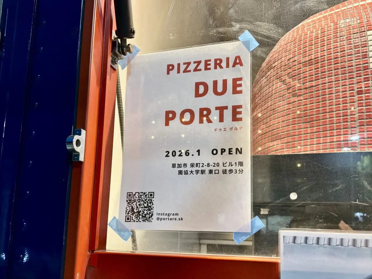 休業期間は2026年1月からで、夏頃の再開を予定。2026年2月5日にグランドオープンした草加松原の新店舗『DUE PORTE (ドゥエ ポルテ)』が、落ち着き次第、再開するのことです。