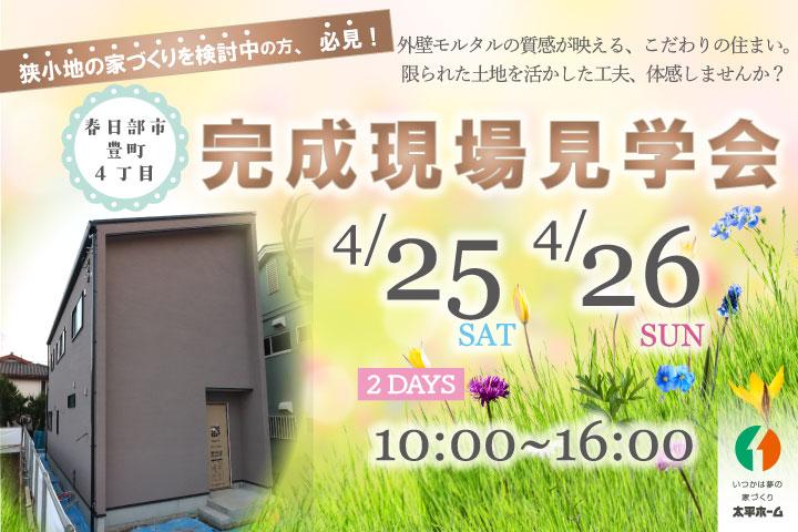 2026年4月25日(土)・26日(日)、春日部市豊町4丁目にて杉戸町の太平ホームが設計・施工した注文建築の【完成現場見学会】を開催します!!