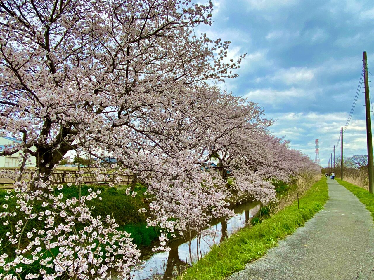 この桜並木は、中庄内排水路沿いに続く全長約3km、約350本もの桜が並ぶスポット。ウォーキングやサイクリングを楽しむ方にも人気の場所です。