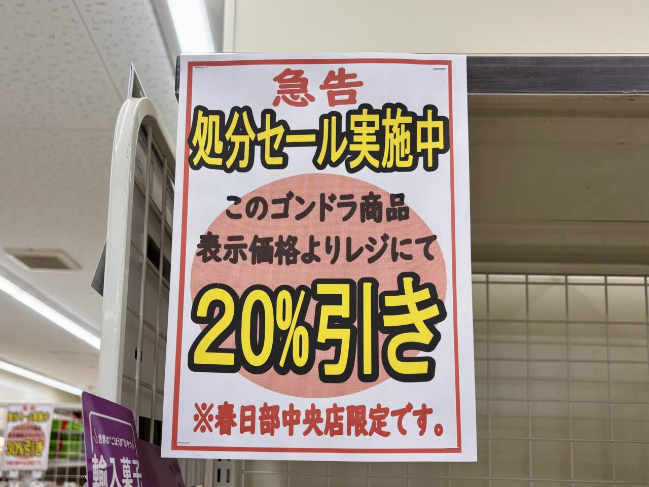 また、一部の商品が10%・20%・30%引きとなっており、棚の商品が少なくなっている様子も見られました。(※対象外の商品もあります)
